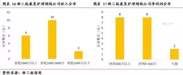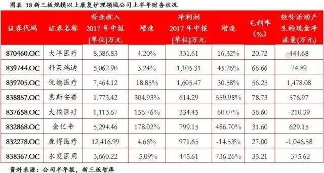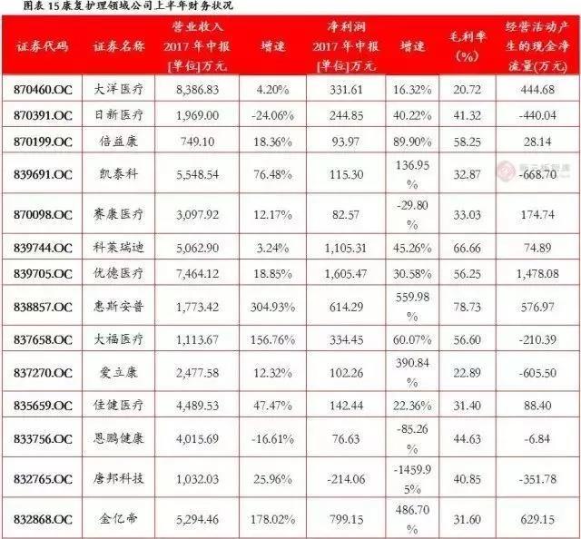 康复护理领域规模相对较大的公司(净利300万以上)共有8家,上半年财务数据如下表所示: